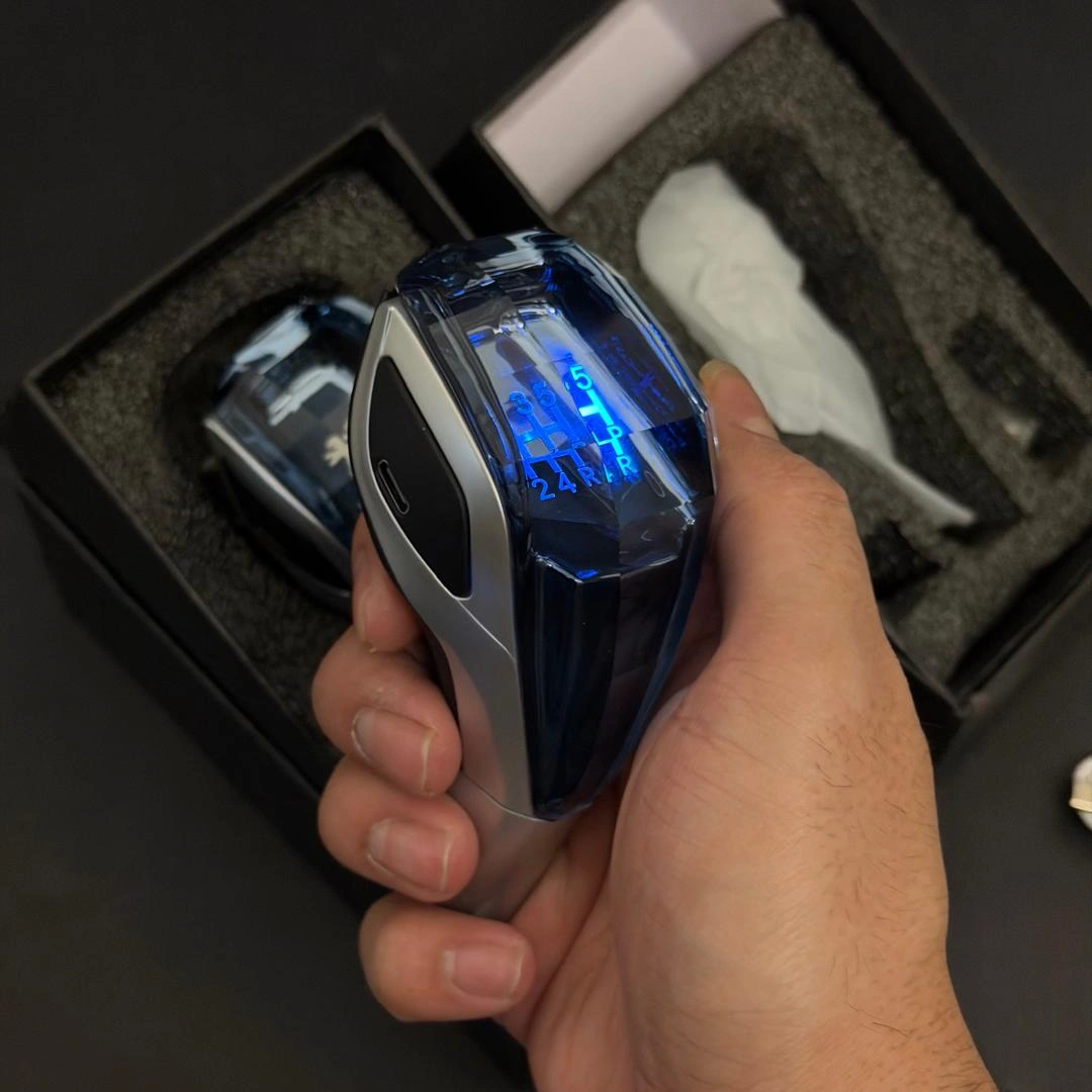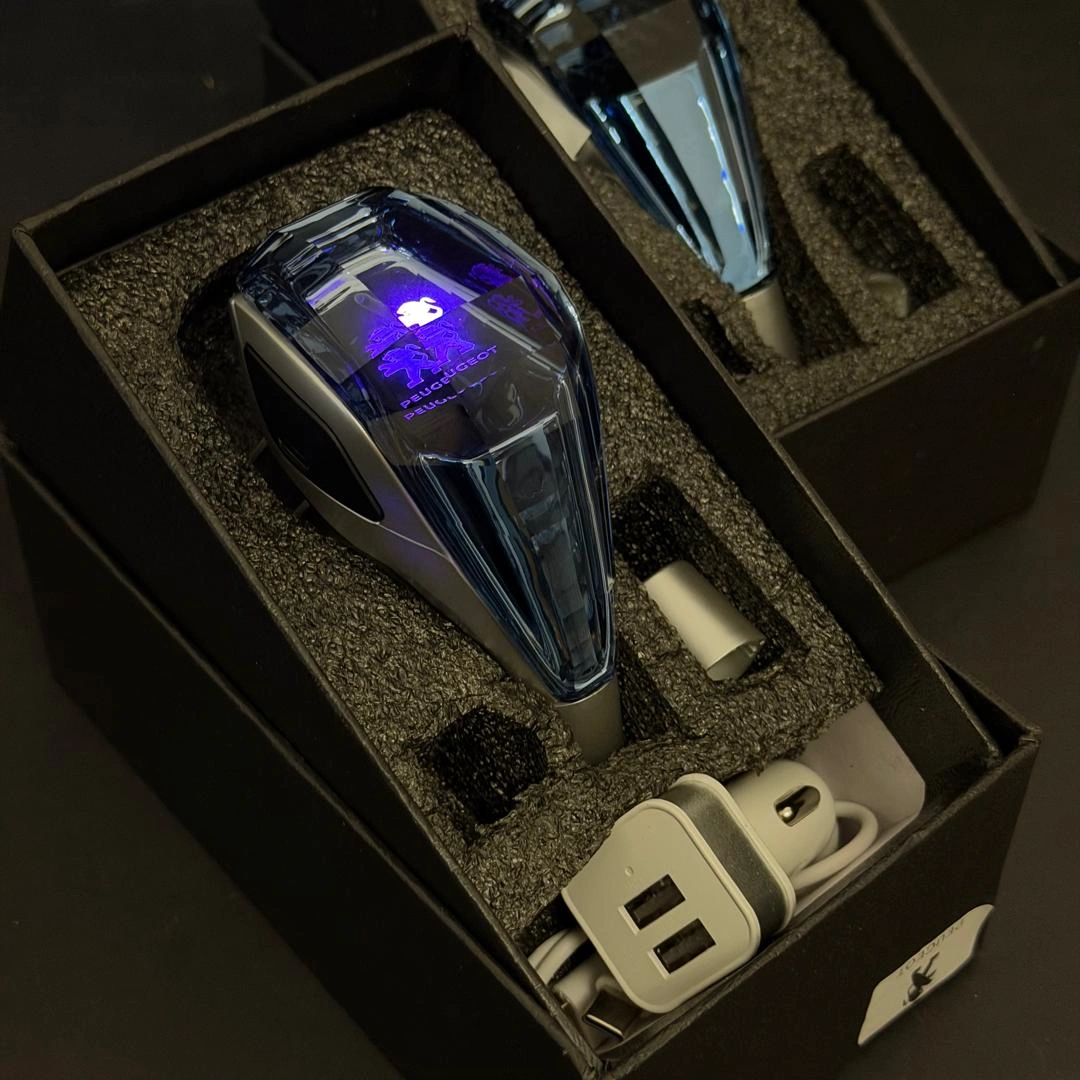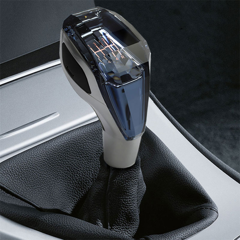 قسمت شفاف این سردنده از جنس کریستال واقعی ضد خط و خش می باشد که جلوه بسیار زیبایی به خودرو می بخشد.درون کریستال سر دنده لوگوی خودرو وجود دارد که هنگام لمس شدن روشن شده و با رنگ های RGB نور می دهد .