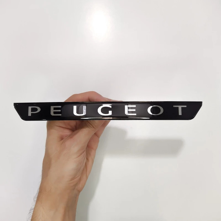 این قطعه ساخته شده از پلاستیک هایگلس مشکی که با ترکیب حروف کرومی فونت پرتقالی PEUGEOT کاری جدید از گروه مجموعه آرسی زد اسپرت می باشد. این قطعه را می توان با چسب 2طرفه 1سانتی با توجه به شیار تعبیه شده روی قطعه که مرکز قطعه را تعیین میکند به راحتی می توان در مرکز سپر خودرو پژو 207 نصب نمود.